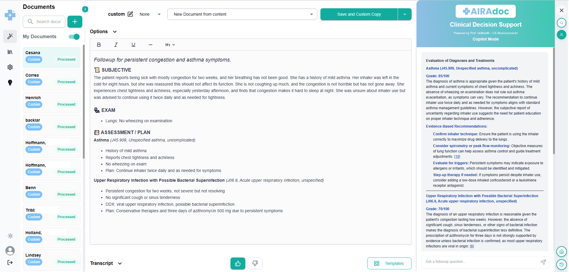 AIRAdoc scribe creates documentation that uses existing patient data, incorporating prior diagnoses, treatment plans and test results, so the document generated is comprehensive and patient specific.