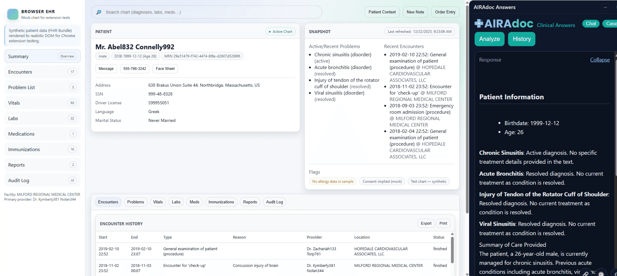 For browser-based EHR systems, AIRAdoc can incorporate the patient's chart information and provide complete case analysis.